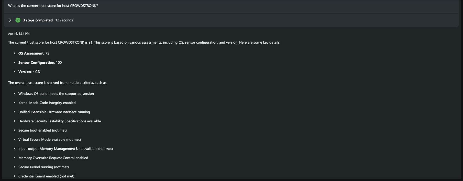 Retrieves the zero trust score of a host.